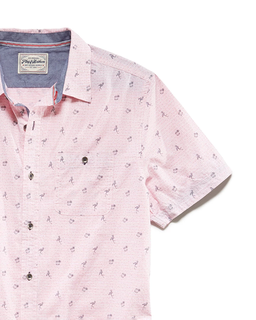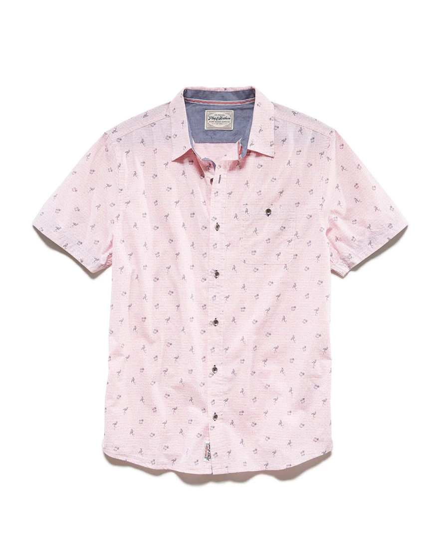 By combining casual everyday style and all-day comfort, our Blaine Short Sleeve Shirt is endlessly versatile and easy to wear with anything and everything. Made from a lightweight cotton fabric with an allover flamingo print and specially washed for a super-soft feel, this is the shirt you’ll reach for again and again. Classic spread collar; single front patch pocket; button closures. Tailored athletic fit.