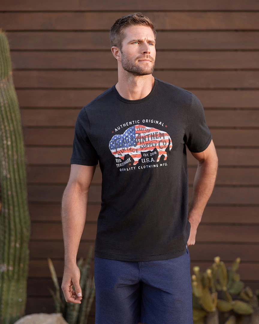 A grand style that never gets old! This super-soft and comfortable slub cotton tee features a tailored athletic silhouette and an all-original Flag & Anthem front graphic that lets your patriotic fervor soar for the ultimate comfortable fit and casual, everyday look. Classic crew neckline.