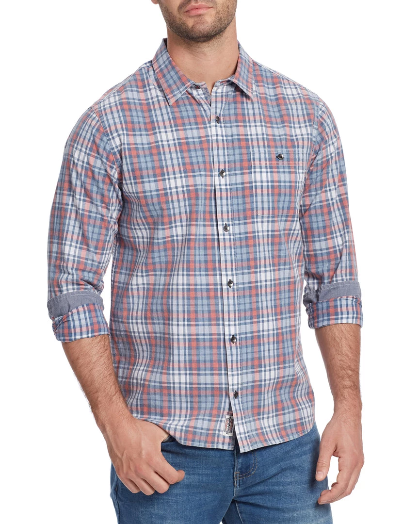Comfortable, casual, with a just-right fit, our Dunlap Vintage Washed Shirt is a must-have for cool summer nights. Cast in a classic plaid print, this lightweight long sleeve shirt is timeless, versatile, and in the perfect length to leave untucked or wear tucked in depending on the occasion. Single front chest pocket; button closures.Â