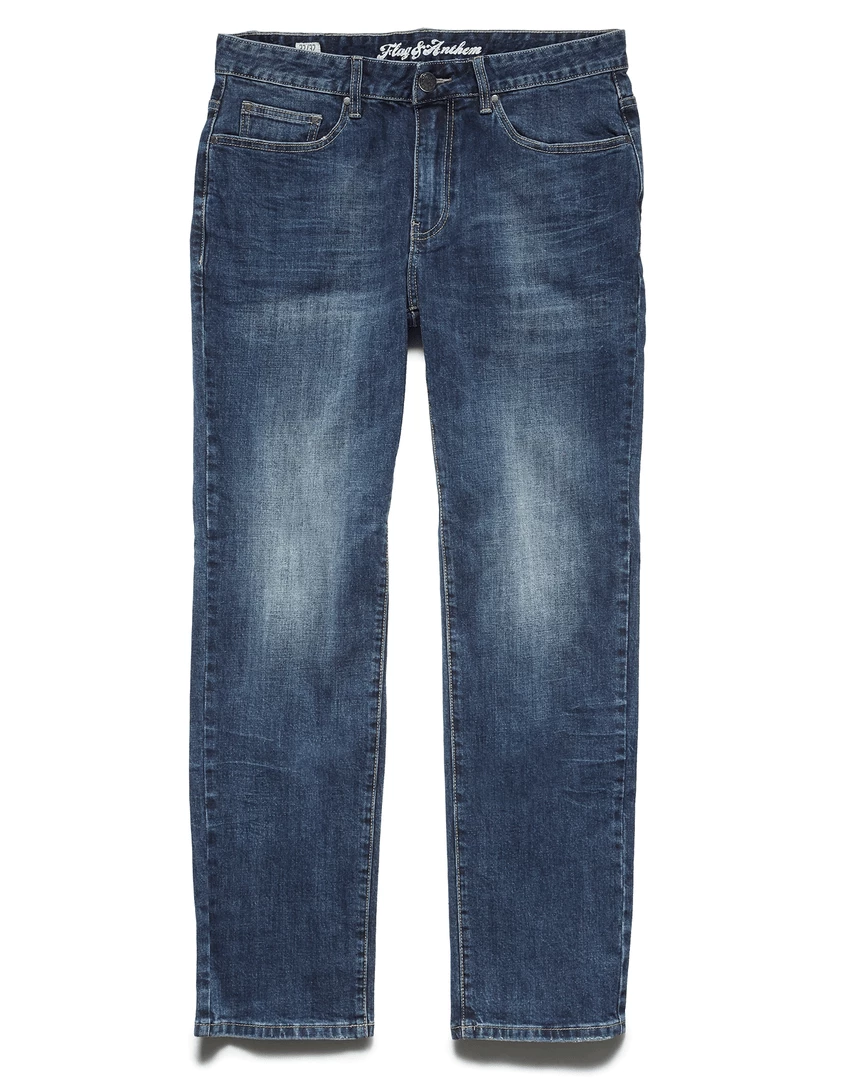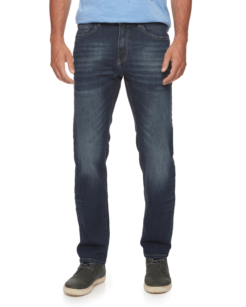 Get a comfortable, casual look that you can count on with the Everetts medium wash jean. This super-soft cotton silhouette is straight from top to bottom, with just-right stretch for easy movement. Traditional 5-pocket styling; zipper fly with logo button closure. Leather logo back patch.Â