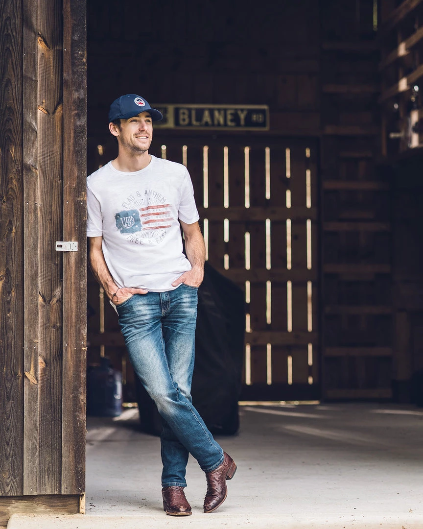 It’s a grand style that never gets old! This super-soft and comfortable slub cotton tee features a tailored athletic silhouette and an all-original Flag & Anthem front graphic that lets your patriotic fervor soar for the ultimate comfortable fit and casual, everyday look. Classic crew neckline.