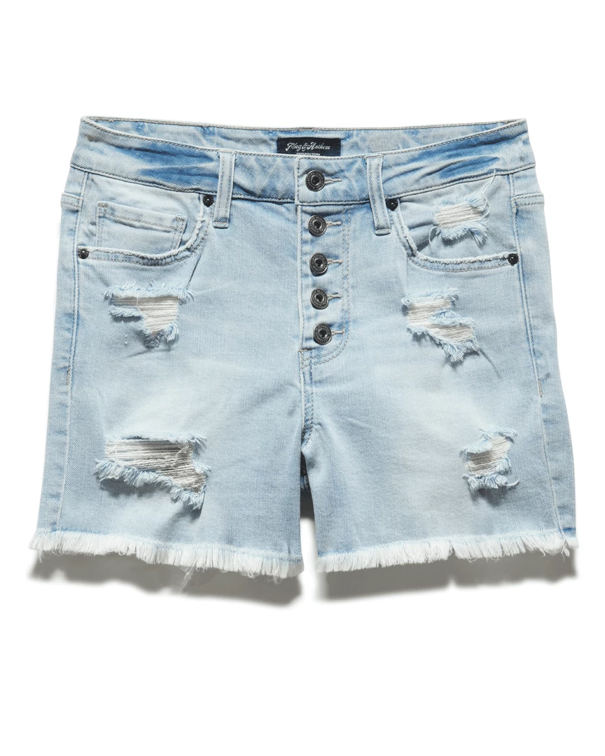 Warm weather calls for perfectly distressed denim shorts, and we’ve got just the pair you need. Made from a super-soft lightweight cotton fabric infused with the perfect amount of stretch, our Fresno women’s distressed denim short holds its shape with movement and wear. High rise; traditional 5-pocket styling. Button fly closure.