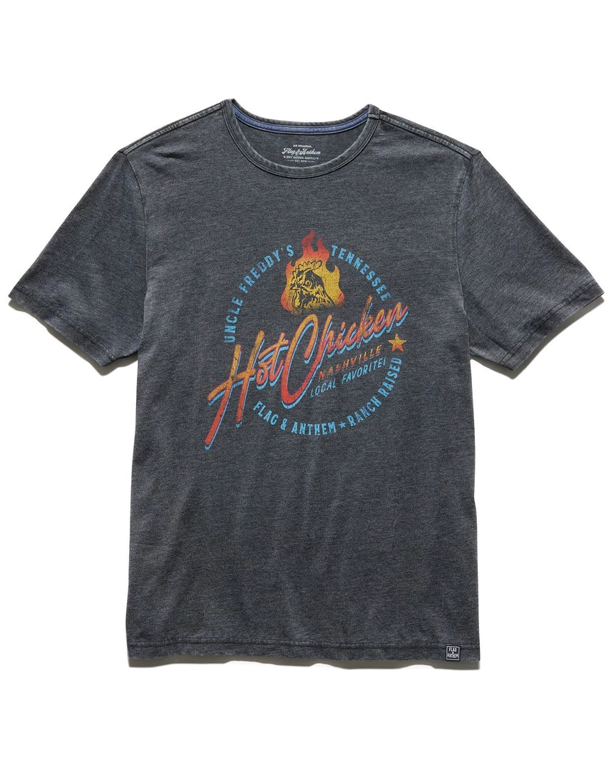 An easy go-to for any casual day, our Hot Chicken Burnout Tee is made from a special blend of insanely soft and comfortable fabrics to keep you looking good and feeling great. All-original Flag & Anthem artwork. Classic crew neckline.