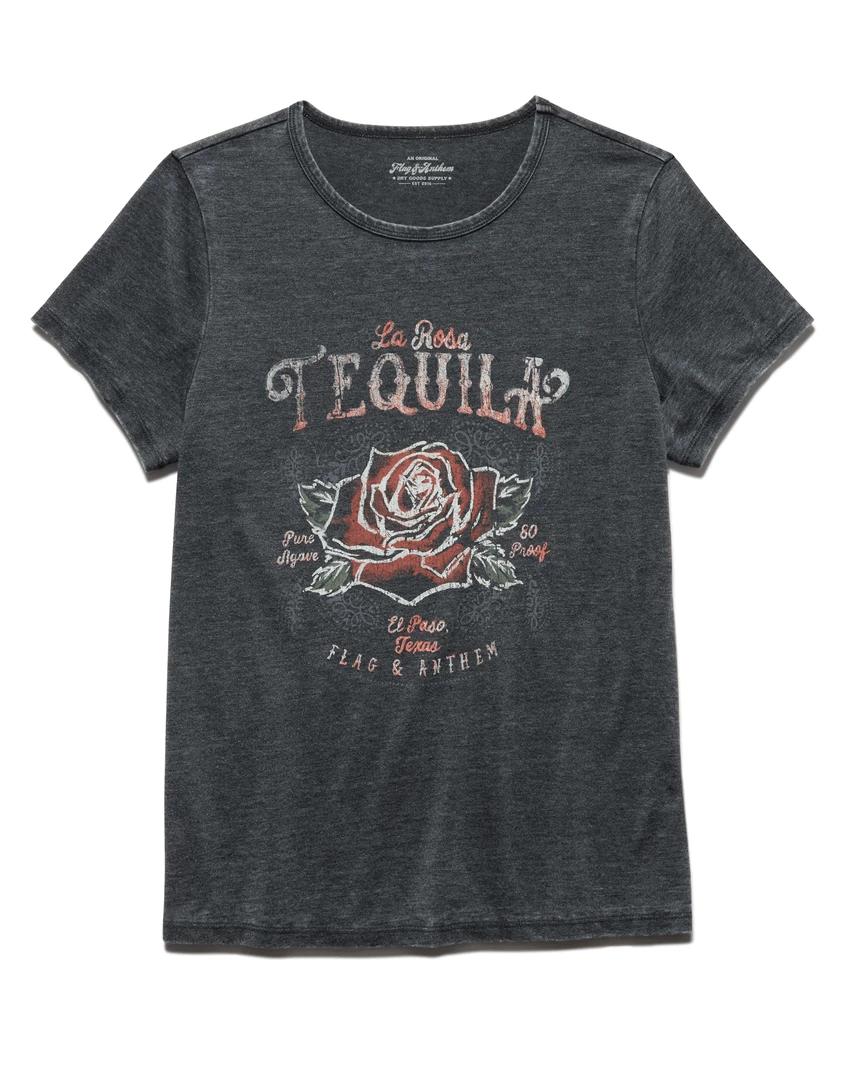 Made from a special blend of super-soft fabrics for a vintage-inspired look and comfortable, lived-in fit and feel, our La Rosa Tequila women’s burnout graphic tee is a must-have for casual warm-weather wear. All-original Flag & Anthem artwork. Classic crew neckline; tailored fit.