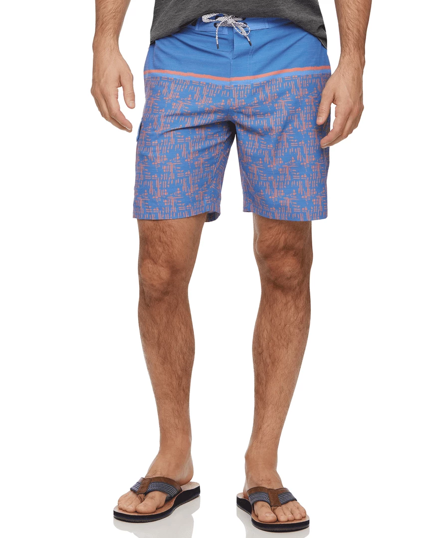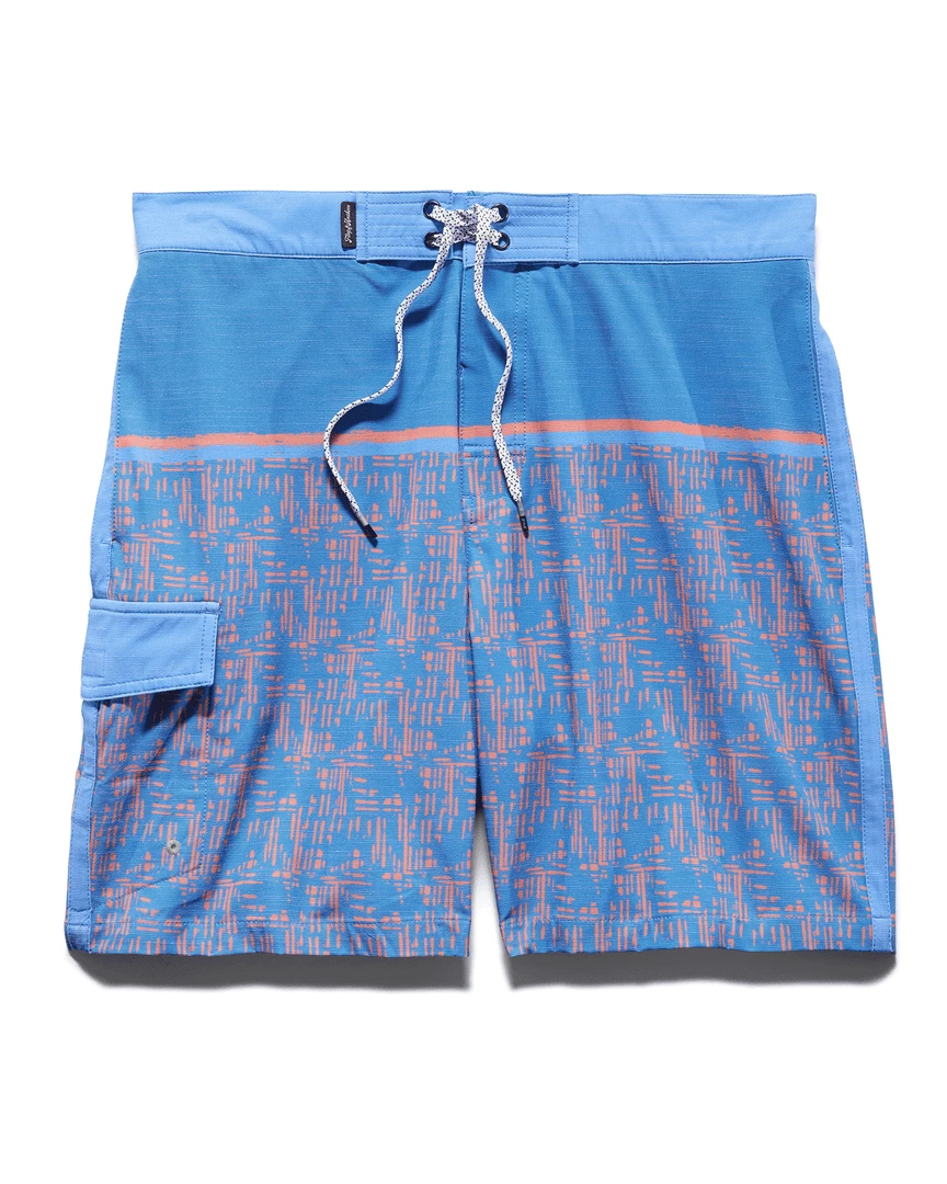 Tough where you need it, stretch where you feel it, this packable board short was specially designed for your next warm-weather adventure. Made from a special blend of lightweight fabrics that allow for increased mobility and ultimate flexibility plus dry super fast, it combines unprecedented levels of comfort and easy-to-wear style. Regular rise; straight leg opening. Adjustable tie closure; faux fly front. Angled mesh pockets at hips. Side flap pocket converts into a built-in bag with a Flag & Anthem Americana flag logo for condensed storage and an easy way to bring this board short anywhere.