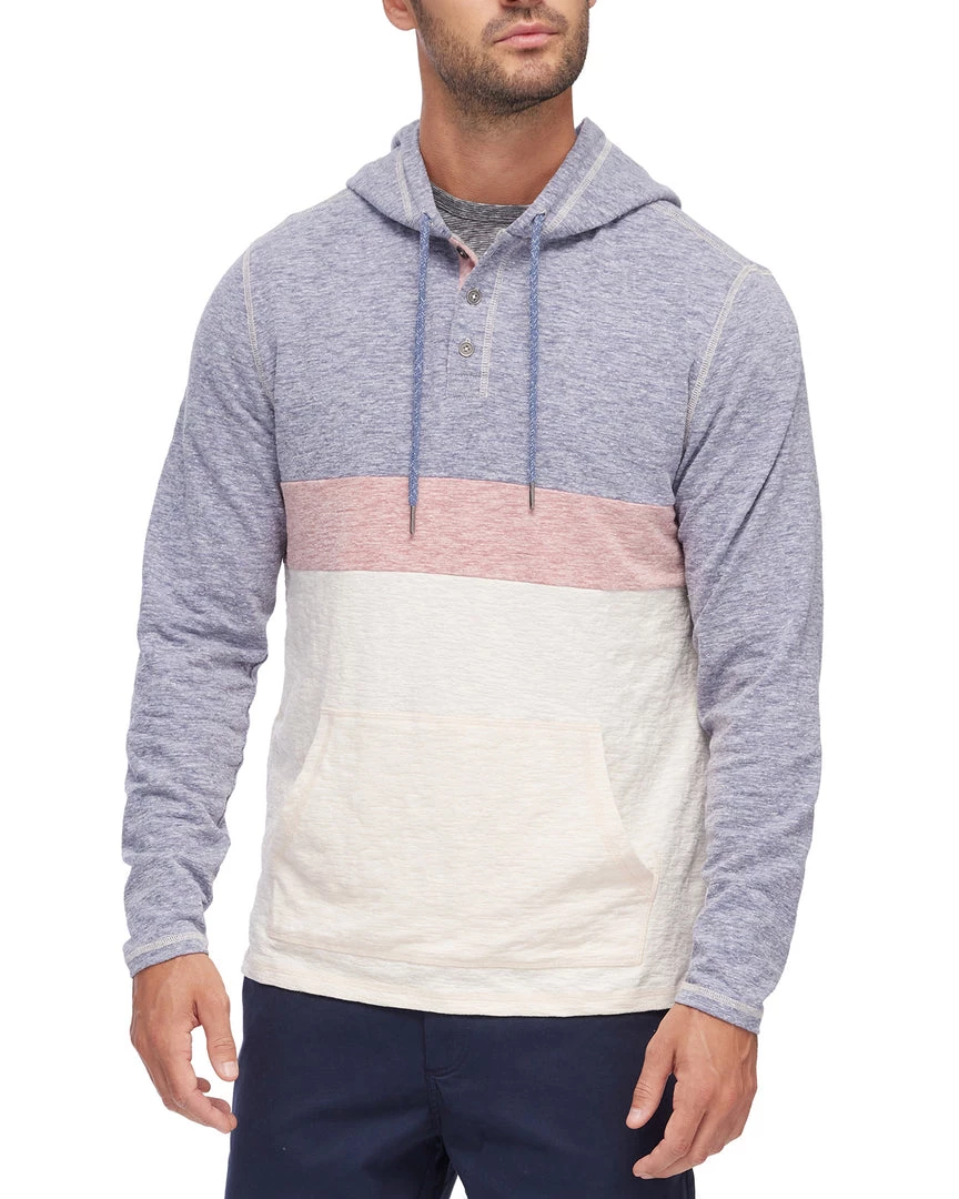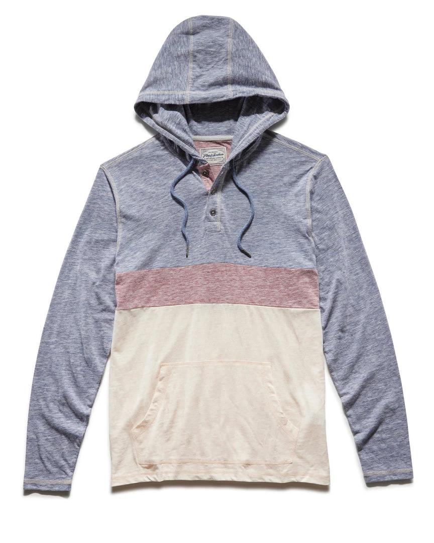 A comfortable hooded henley in an insanely soft lightweight slub fabric and a tailored athletic fit. Wear it hanging at home with joggers or sweat shorts or pair it with your favorite chinos or jeans for a more elevated look. Adjustable drawstring hood; classic three-button henley front placket; functional kangaroo front pocket.