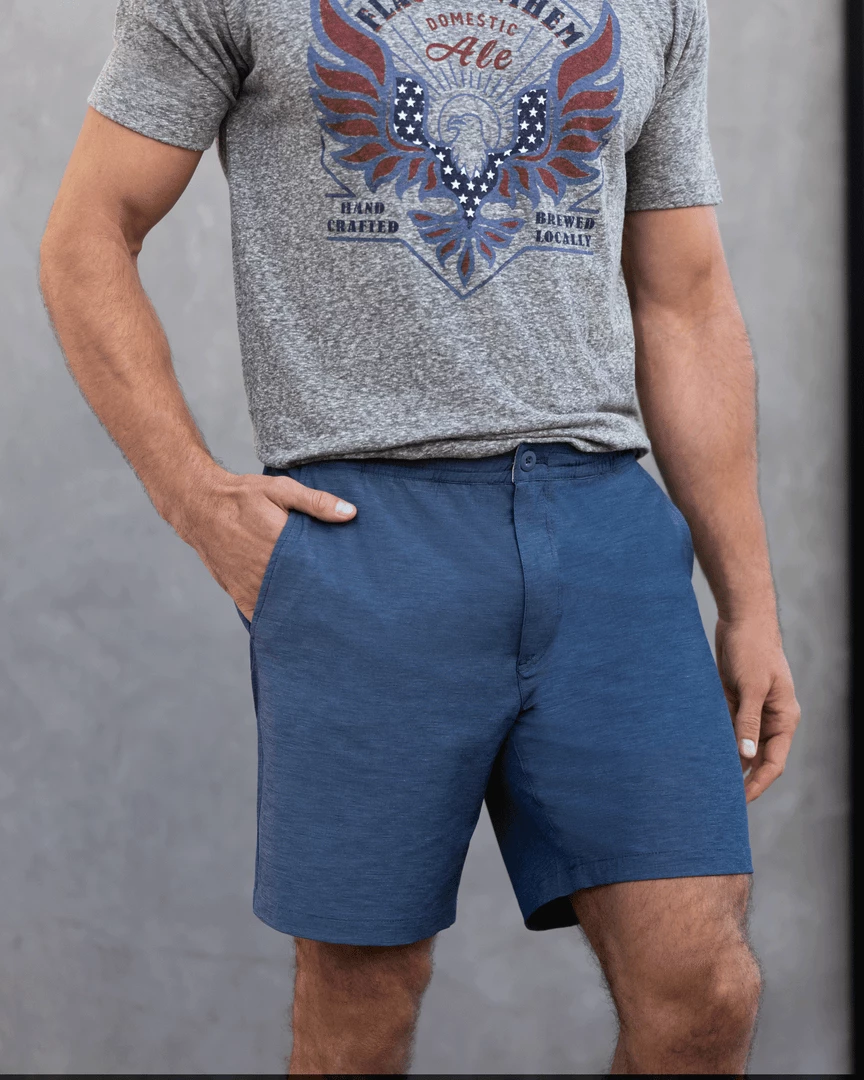 This versatile hybrid short was made for every moment. Equipped with moisture-wicking and quick-drying technology plus the perfect amount of four-way stretch, they can take a splash – or even a swim – and look great in time for happy hour. Elastic drawcord waistband with faux-fly plus button closure for ultimate comfort and max versatility. Regular rise; straight leg opening. Angled mesh-lined hip pockets; mesh-lined zip back pockets.