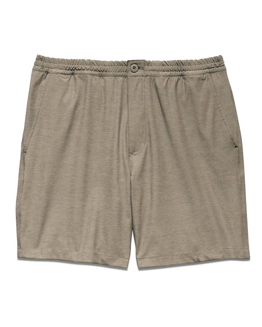 This versatile hybrid short was made for every moment. Equipped with moisture-wicking and quick-drying technology plus the perfect amount of four-way stretch, they can take a splash – or even a swim – and look great in time for happy hour. Elastic drawcord waistband with faux-fly plus button closure for ultimate comfort and max versatility. Regular rise; straight leg opening. Angled mesh-lined hip pockets; mesh-lined zip back pockets.