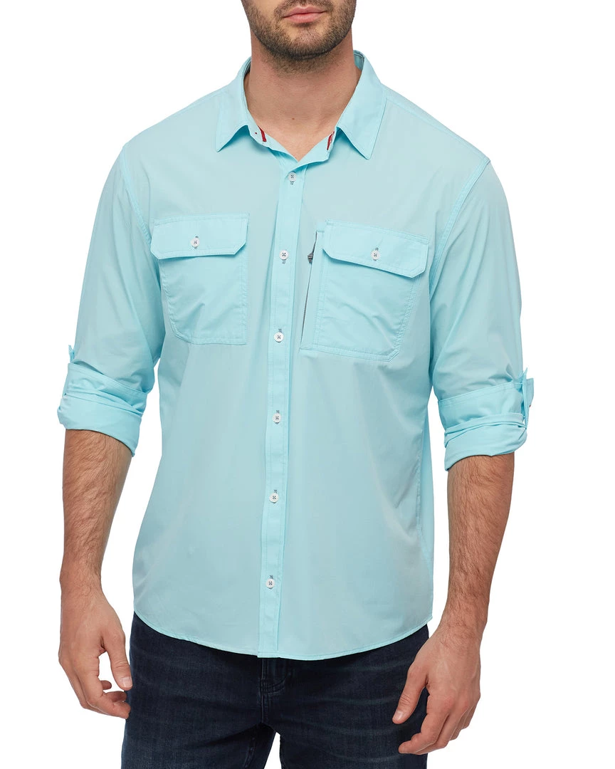 A comfortable button-down shirt is a year-round favorite, but this one was designed specifically for hot summer days. Made from a lightweight and breathable stretch fabric that wicks away moisture and offers UPF 30 sun protection, our MadeFlex UPF Performance Shirt is a great choice for when spending time outside. Featuring a mesh-lined back vent so you can feel the breeze, this shirt works hard to keep you cool on sweltering days. Dual front chest pockets + mesh-lined zip storage pocket on wearer’s left chest. Tailored athletic fit.
