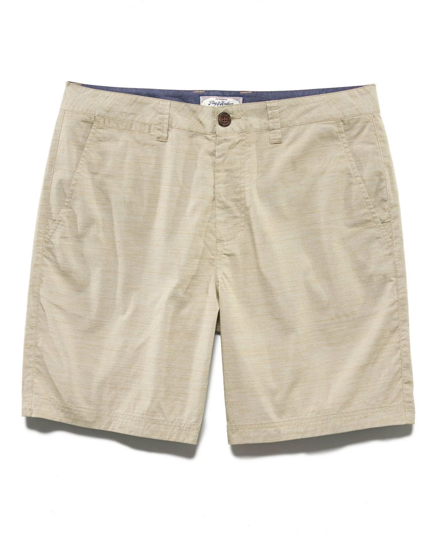 Your classic, casual warm-weather look is about to get a lot more comfortable thanks to the unrestrictive fit of these super-soft slub cotton shorts. Straight leg opening falls just above the knee. Angled front pockets at hips, plus additional coin pocket; fabric logo back patch.Â