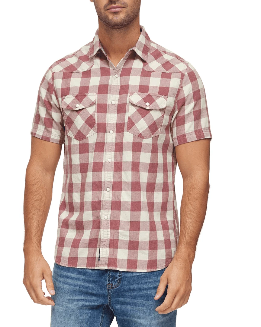 Made from ultra-soft premium cotton fabric detailed with a timeless plaid print, this short-sleeve Western shirt offers a vintage-inspired look and an unbelievably comfortable fit and feel. Antique pearlized snap button closures; dual front flap pockets. Tailored athletic fit.Â