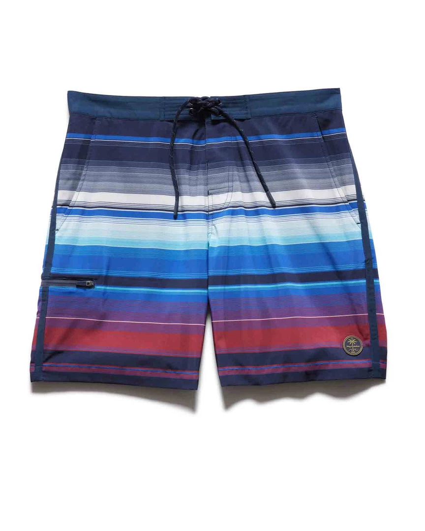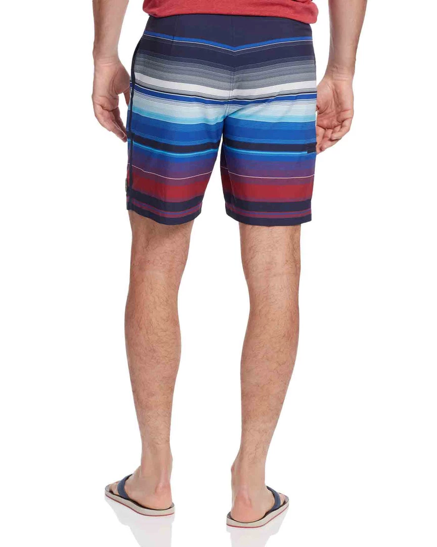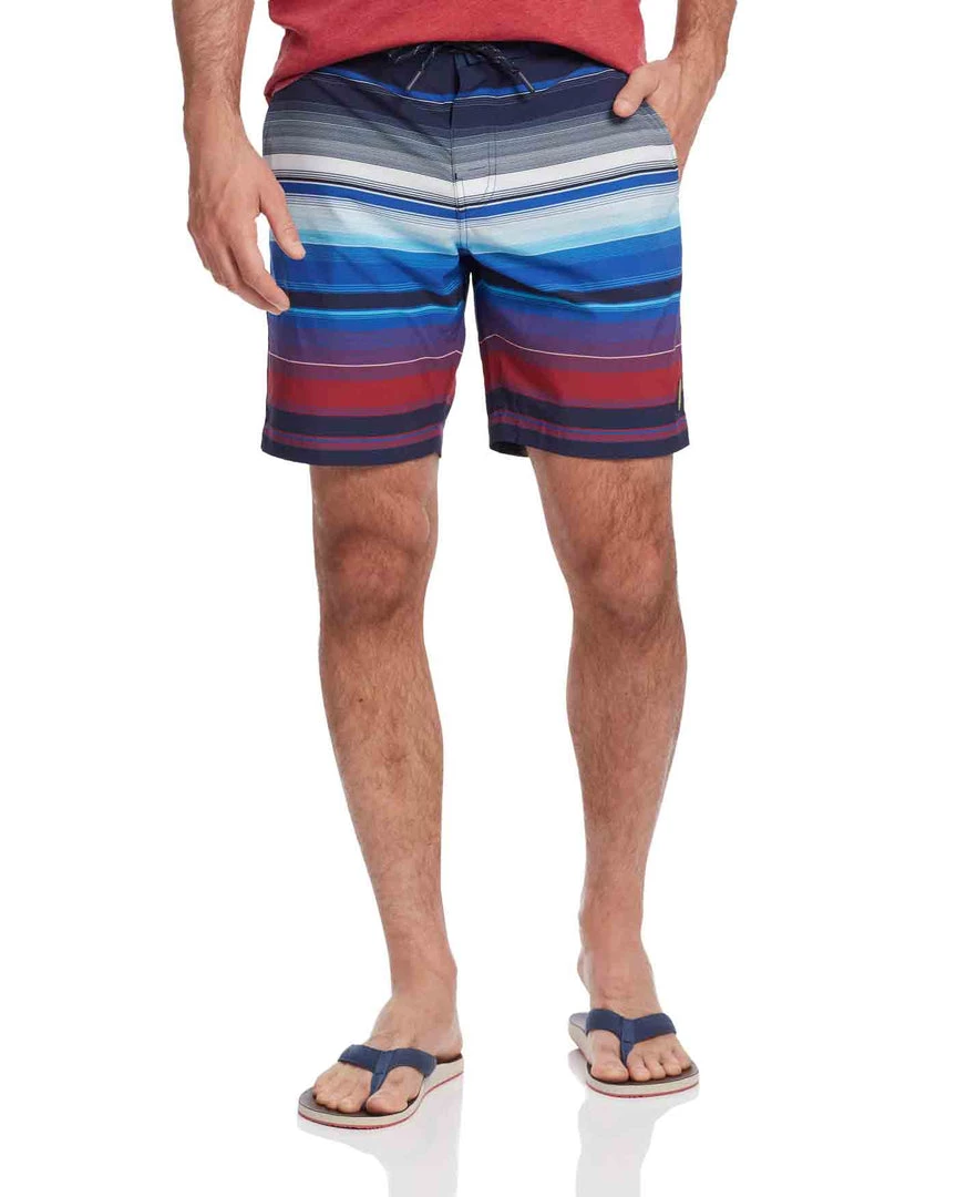 For ultimate comfort and long-lasting durability, the Beech Striped Swim Short is your go-to. Made from a lightweight stretch fabric that dries super fast, this staple summer style is tough enough to endure anything that nature throws at you and comfortable enough to wear all day. Regular rise; straight leg opening. Adjustable tie closure; faux fly front. Angled mesh pockets at hips; zippered mesh storage pocket along right thigh; single back zip mesh pocket. Rubberized Flag & Anthem patch logo.