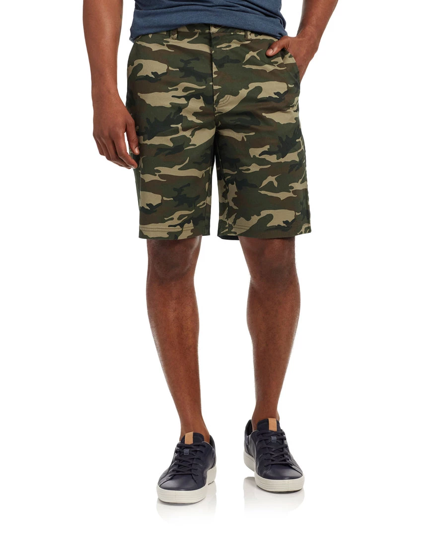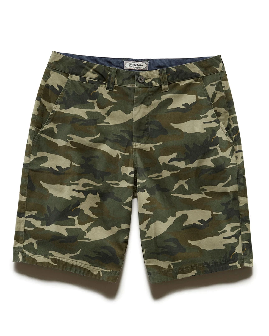Comfortable, casual, cool, and camo, these shorts are sure to become your go-to for everyday styling. Cut from a super-soft cotton blend fabric complete with just the right amount of stretch for a full range of motion. Regular rise; straight leg opening falls at the knee. Angled front pockets at hips, plus additional coin pocket; fabric logo back patch.Â