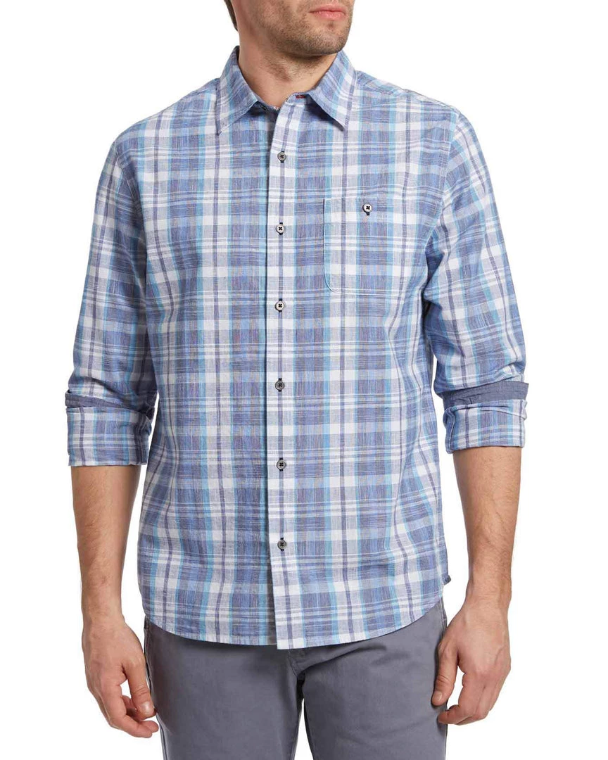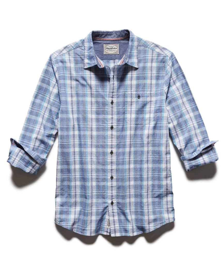 The perfect plaid long sleeve shirt for sunnier days ahead, the Eastford Shirt offers an endlessly versatile look and feel for any – and every – day. Contrast chambray fabric in collar and cuffs. Button closures. Single front patch pocket. Tailored athletic fit.