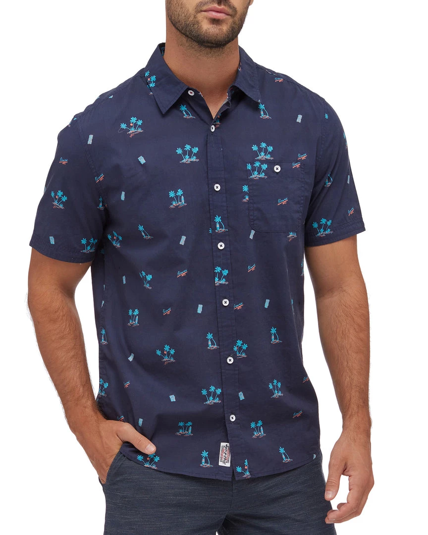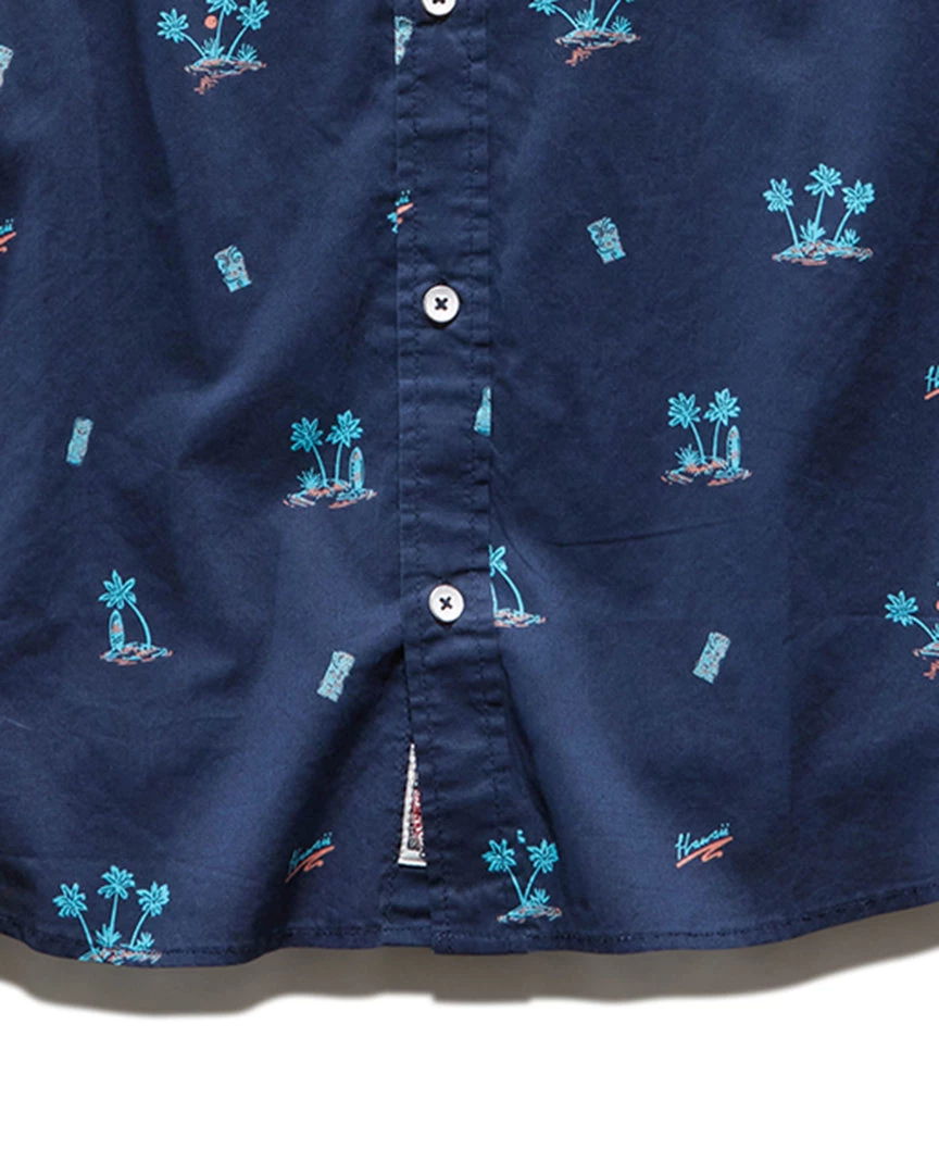 The swaying palm trees of your favorite beach getaway are never too far away when you’re wearing our Honolulu Hawaiian Print Shirt. The super-soft, lightweight, pure cotton fabric provides island-inspired luxury and the tailored athletic fit looks just as good as it feels. Contrast chambray fabric inside collar stand, back yoke, front placket, and sleeve cuffs. Single chest pocket; button closures.