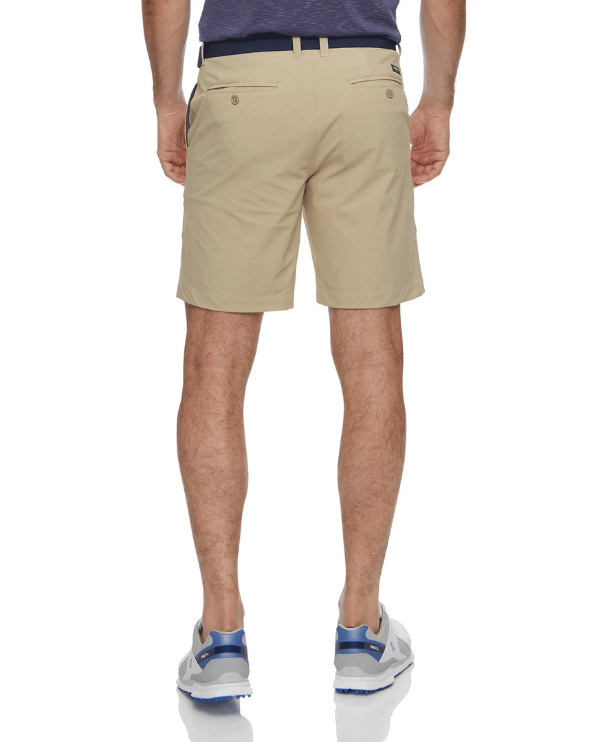 With a classic color and a comfortable feel, your guide to a good day starts with this stretchy, versatile hybrid short whether you’re heading to the beach, meeting up for a drink, or playing 18 on your favorite course. Designed with built-in four-way stretch for maximum mobility plus moisture-wicking and quick-dry technology, it’s true performance from start to finish. Regular rise; straight leg opening. Angled front pockets; back welt pockets with button closure.