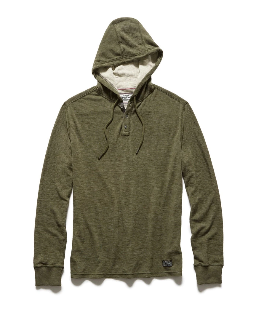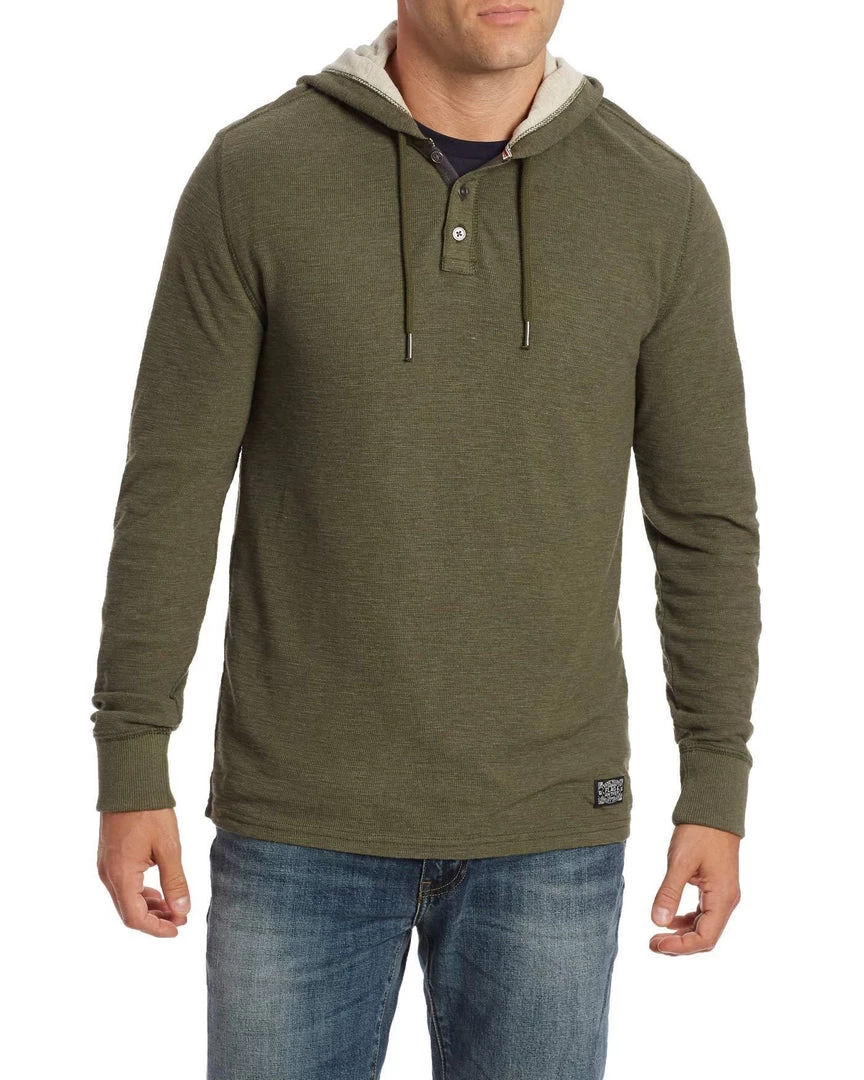 We’ve combined two of our favorite styles in this comfortable henley hoodie. Made from a super-soft, lightweight cotton, ideal for any day or night, this classic pullover sweatshirt is endlessly versatile and always in style. Adjustable drawstring hood; three-button front placket. Woven Flag & Anthem jock label. Tailored athletic fit.