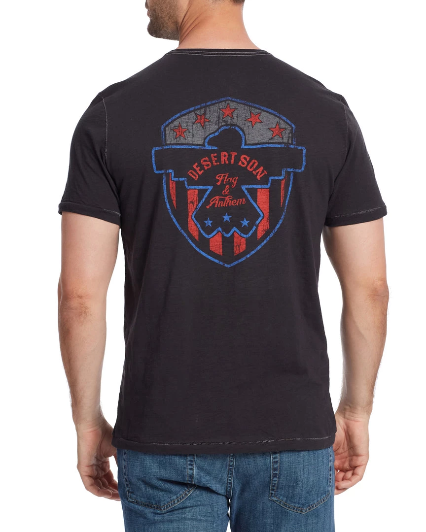 Part of our exclusive Desert Son collection, created in collaboration with Dierks Bentley, this casual and comfortable slub cotton crewneck tee features all-original artwork inspired by the artist’s iconic Riser Bird logo on both the wearer’s left chest and across the back. Tailored athletic fit.