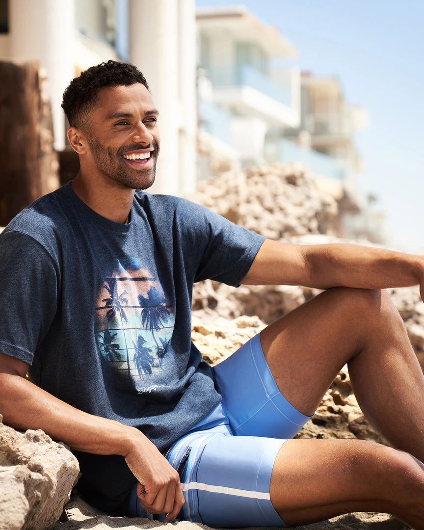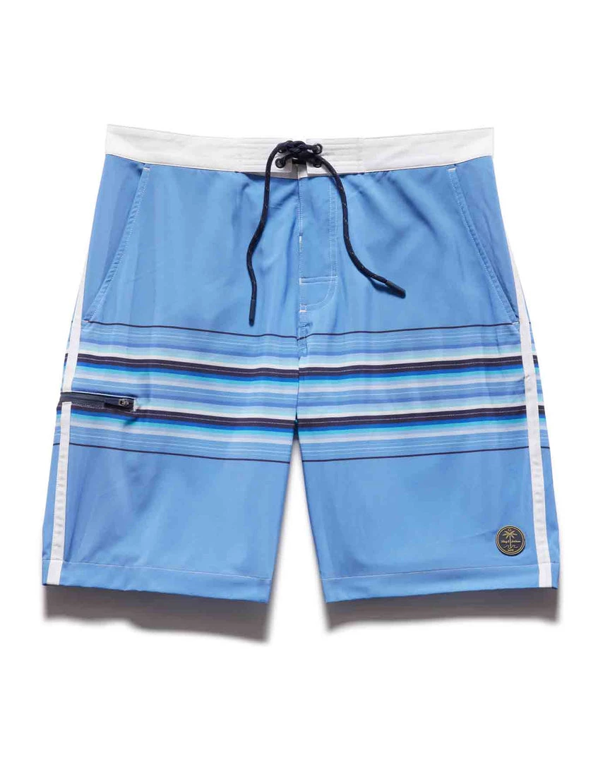 Great for the beach, perfect for the pool, and comfortable enough to wear all day, our Rockaway Striped Board Short is standard and functional. Made from a durable yet lightweight stretch fabric that dries super fast, you can wear this short when you’re going for a swim and keep them on when you’re headed to lunch. Regular rise; straight leg opening. Adjustable tie closure; faux fly front. Angled mesh pockets at hips; zippered mesh storage pocket along right thigh; single back zip mesh pocket. Rubberized Flag & Anthem patch logo.