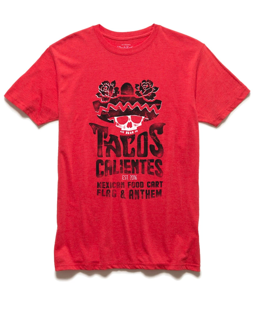 If the question is tacos, the answer is more. Express your love for your favorite food group with the super-soft and comfortable Tacos Caliente Tee. Original Flag & Anthem artwork. Slim fit. We suggest sizing up if you prefer a more relaxed look and feel.