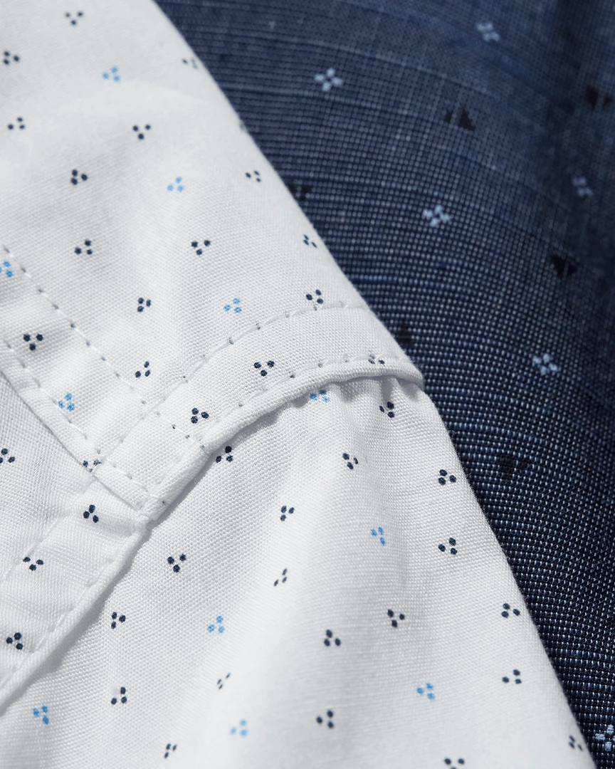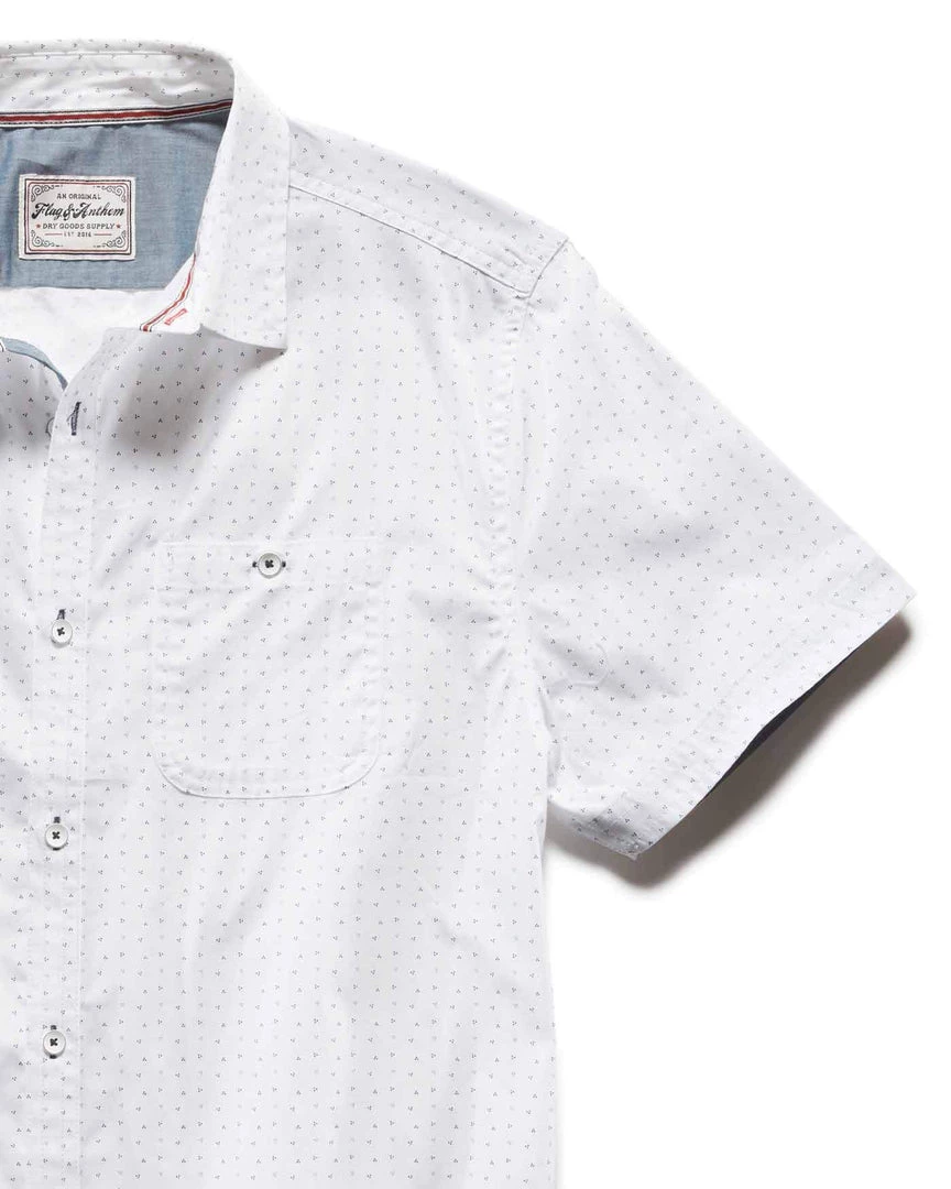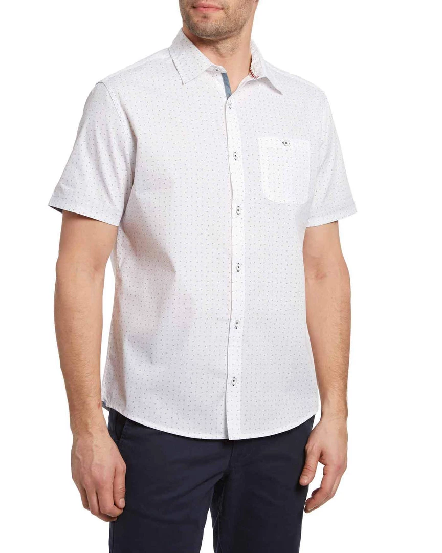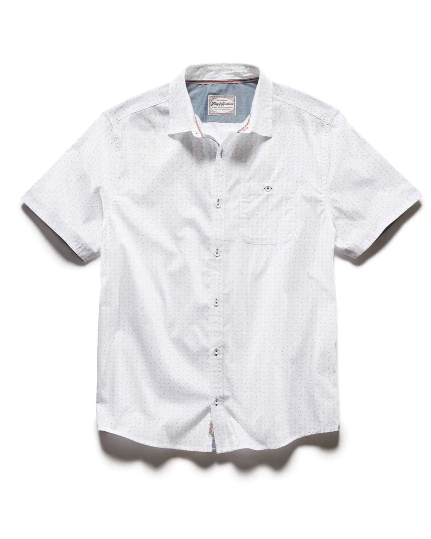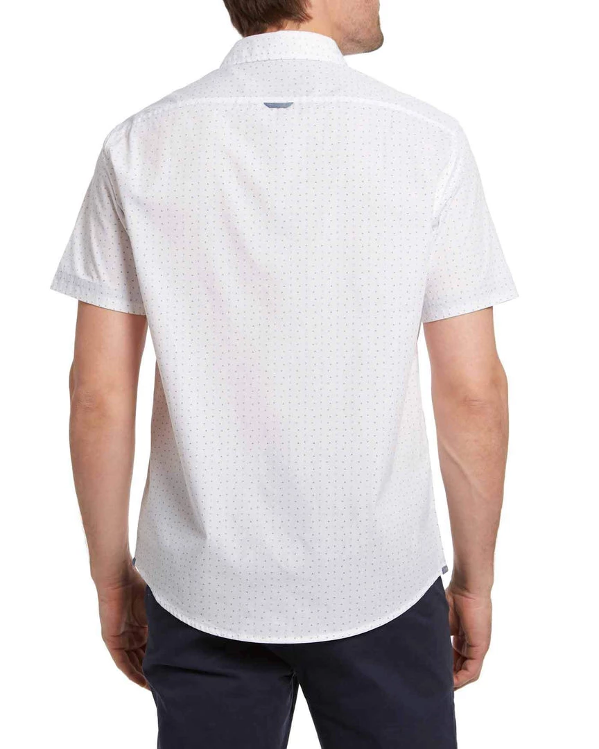 Keep your spring-into-summer look on point with the Millington short sleeve shirt. Cut from crisp, comfortable, ultra-soft cotton that features a mini dot print, this button-front style is endlessly versatile, perfect for any – and every – day. Single front patch pocket. Tailored athletic fit.