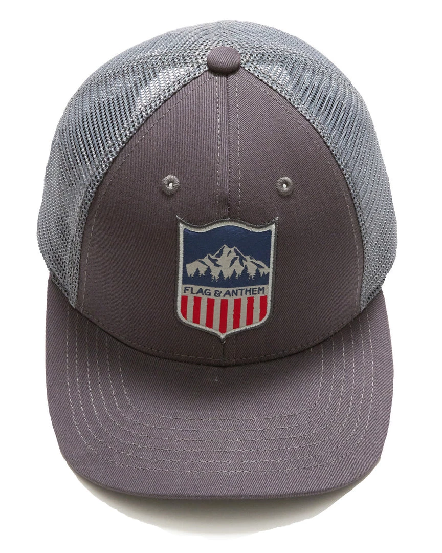 Kindle your sense of adventure and bring the mountains straight to you. Made from a lightweight and breathable cotton blend fabric with back and side mesh panels for increased airflow and added ventilation, this comfortable vintage-inspired trucker hat is easy to wear every day and knows no season. Original Flag & Anthem artwork. Pre-curved brim; adjustable snapback closure.