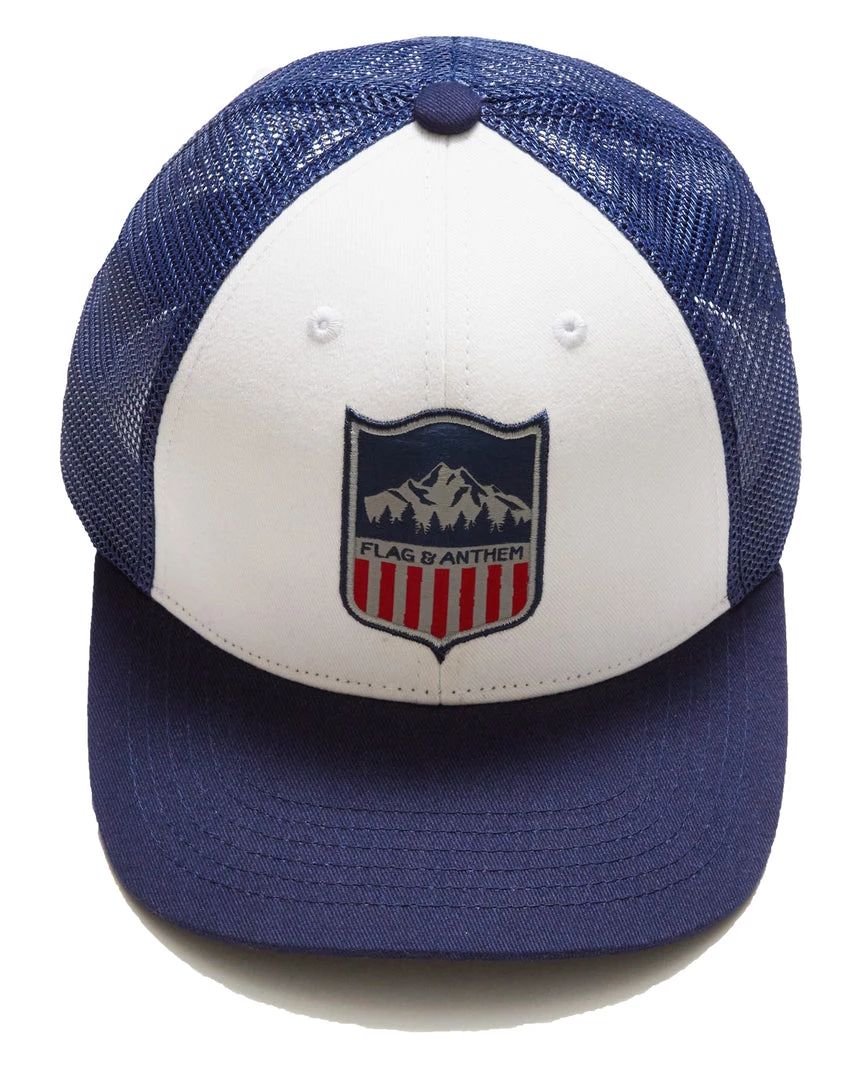 Kindle your sense of adventure and bring the mountains straight to you. Made from a lightweight and breathable cotton blend fabric with back and side mesh panels for increased airflow and added ventilation, this comfortable vintage-inspired trucker hat is easy to wear every day and knows no season. Original Flag & Anthem artwork. Pre-curved brim; adjustable snapback closure.