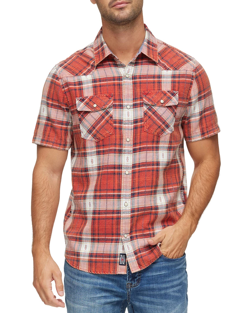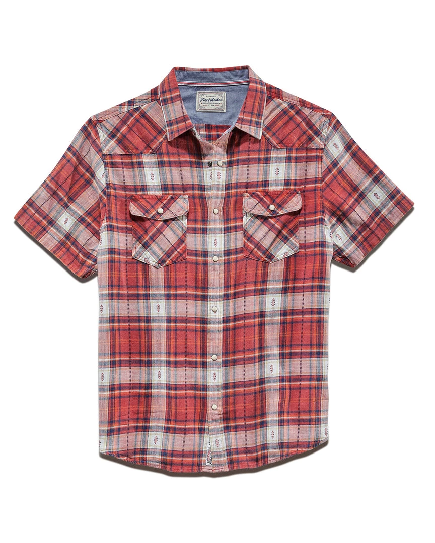 Made from breathable, lightweight cotton that’s been washed for supreme softness and featuring versatile vintage-inspired details to instantly elevate your look, this premium plaid shirt provides ultimate comfort in warmer weather and is a staple for your everyday rotation. Contrast chambray fabric inside collar stand, back yoke, and sleeve cuffs. Dual front chest pockets; button closures. Tailored athletic fit.