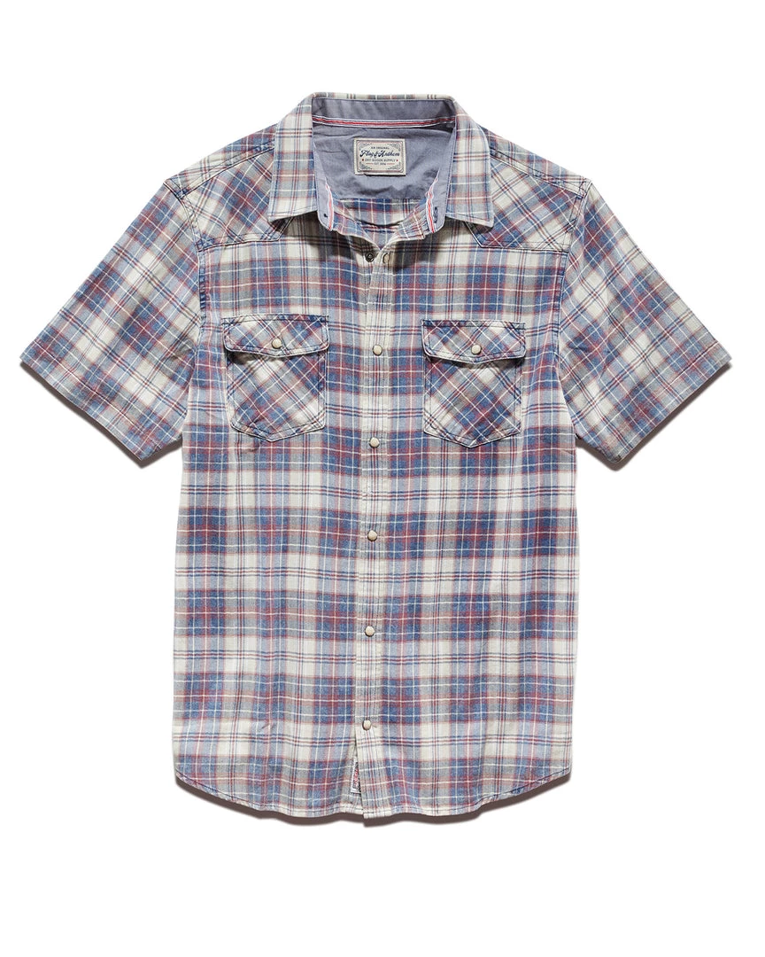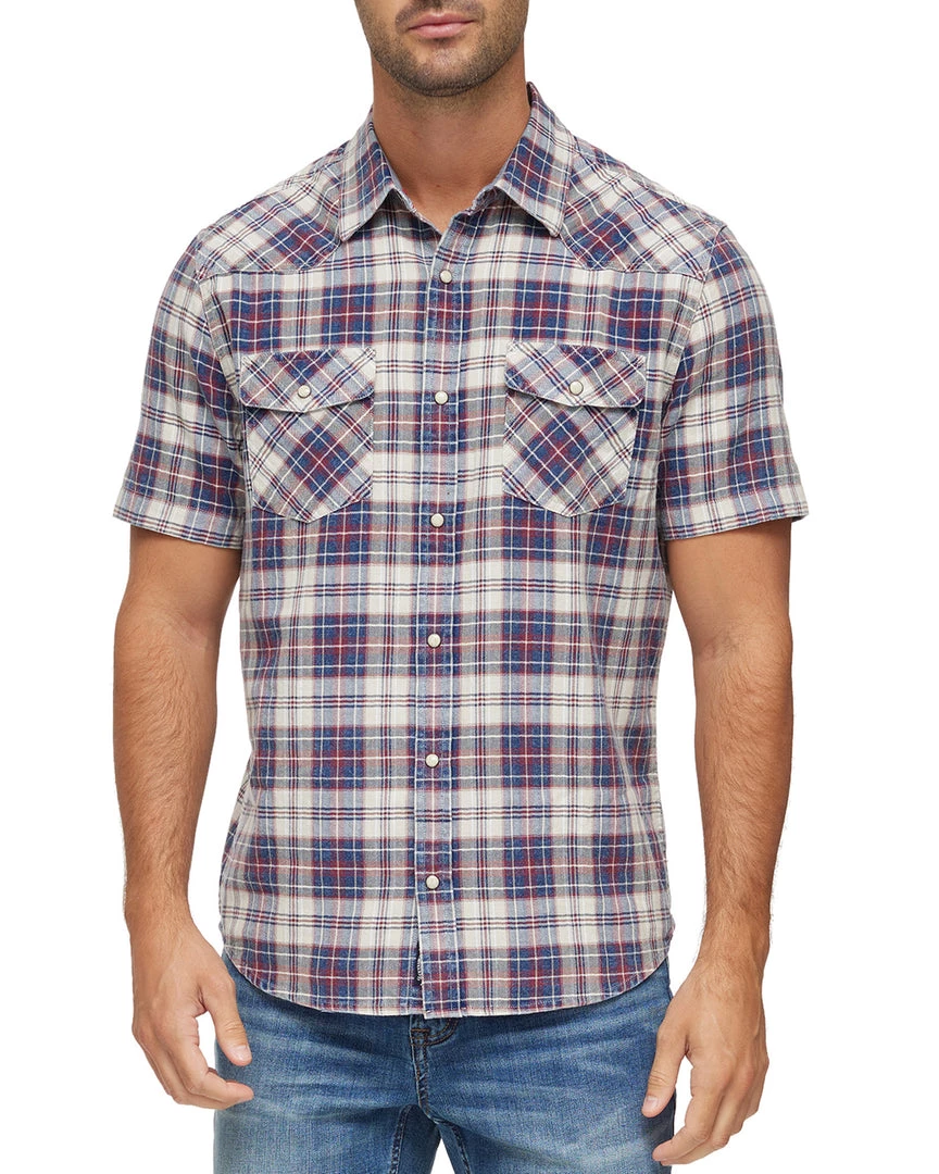 Made from breathable, lightweight cotton that’s been washed for supreme softness and featuring versatile vintage-inspired details to instantly elevate your look, this premium plaid shirt provides ultimate comfort in warmer weather and is a staple for your everyday rotation. Contrast chambray fabric inside collar stand, back yoke, and sleeve cuffs. Dual front chest pockets; button closures. Tailored athletic fit.