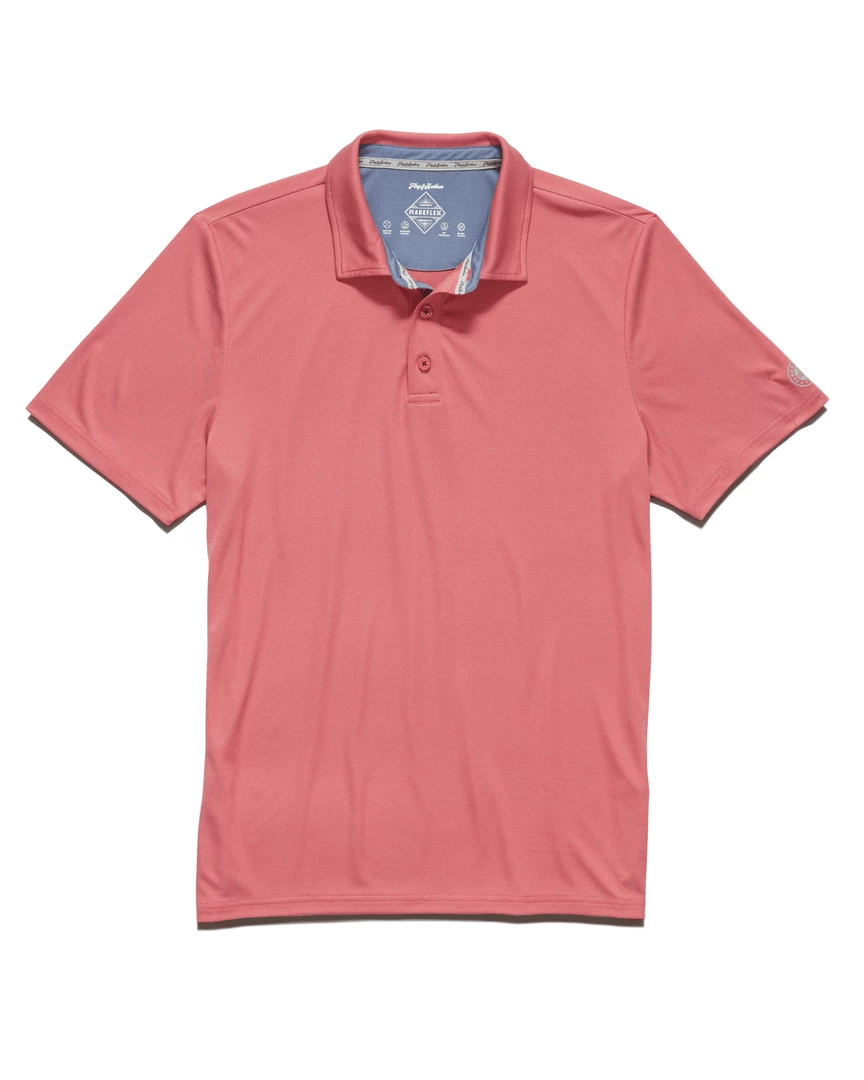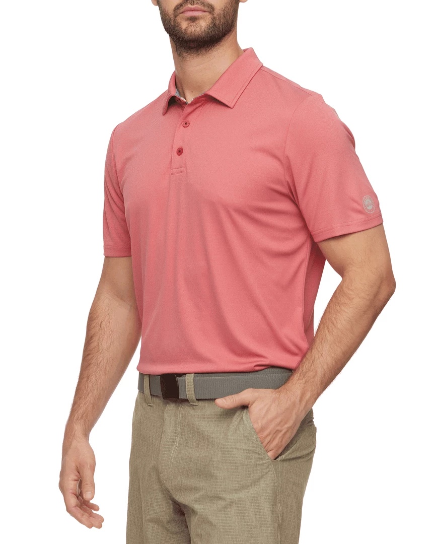 An innovative performance polo designed to look sharp, feel comfortable, and effortlessly transition from a morning on the water to an afternoon on the course and then out to dinner and drinks afterward. Featuring some of our best performance technologies to wick away moisture, maximize mobility, and shield you from the sun plus a versatile heathered look with micro-feeder stripes, this polo will quickly become your go-to. Traditional three-button front placket; rubberized MadeFlex performance patch logo at center back neck. Tailored athletic fit.