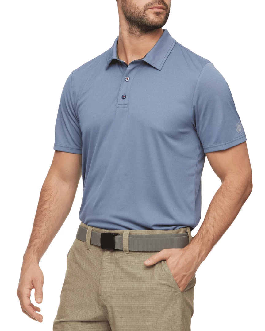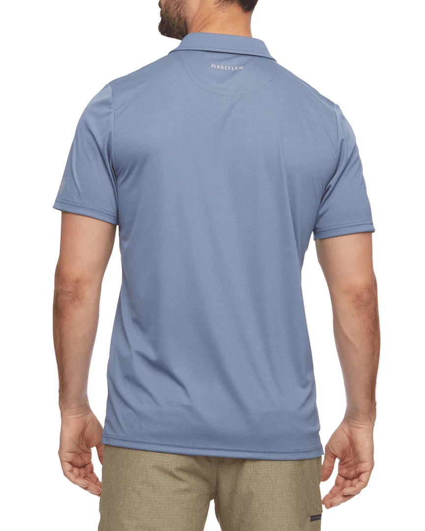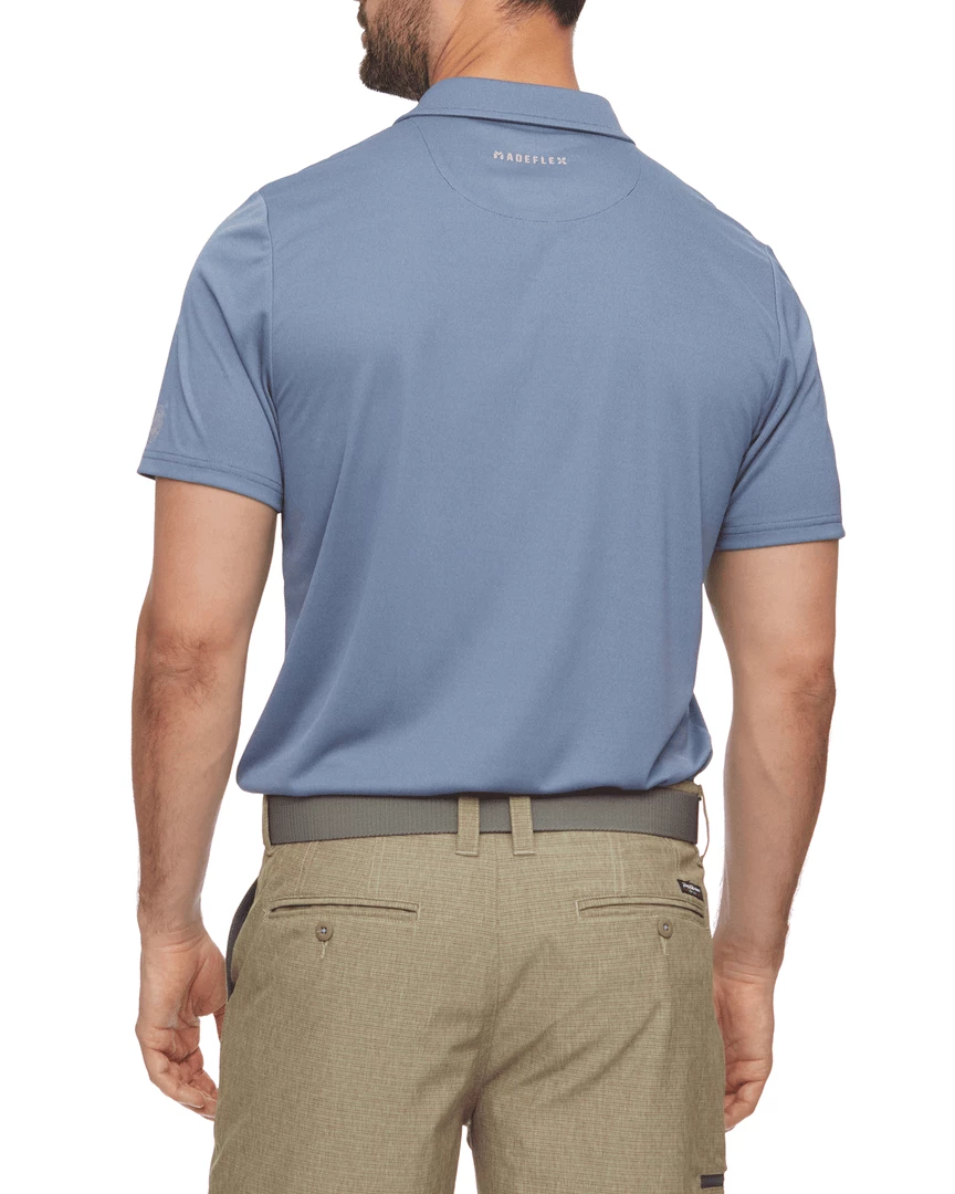 An innovative performance polo designed to look sharp, feel comfortable, and effortlessly transition from a morning on the water to an afternoon on the course and then out to dinner and drinks afterward. Featuring some of our best performance technologies to wick away moisture, maximize mobility, and shield you from the sun plus a versatile heathered look with micro-feeder stripes, this polo will quickly become your go-to. Traditional three-button front placket; rubberized MadeFlex performance patch logo at center back neck. Tailored athletic fit.