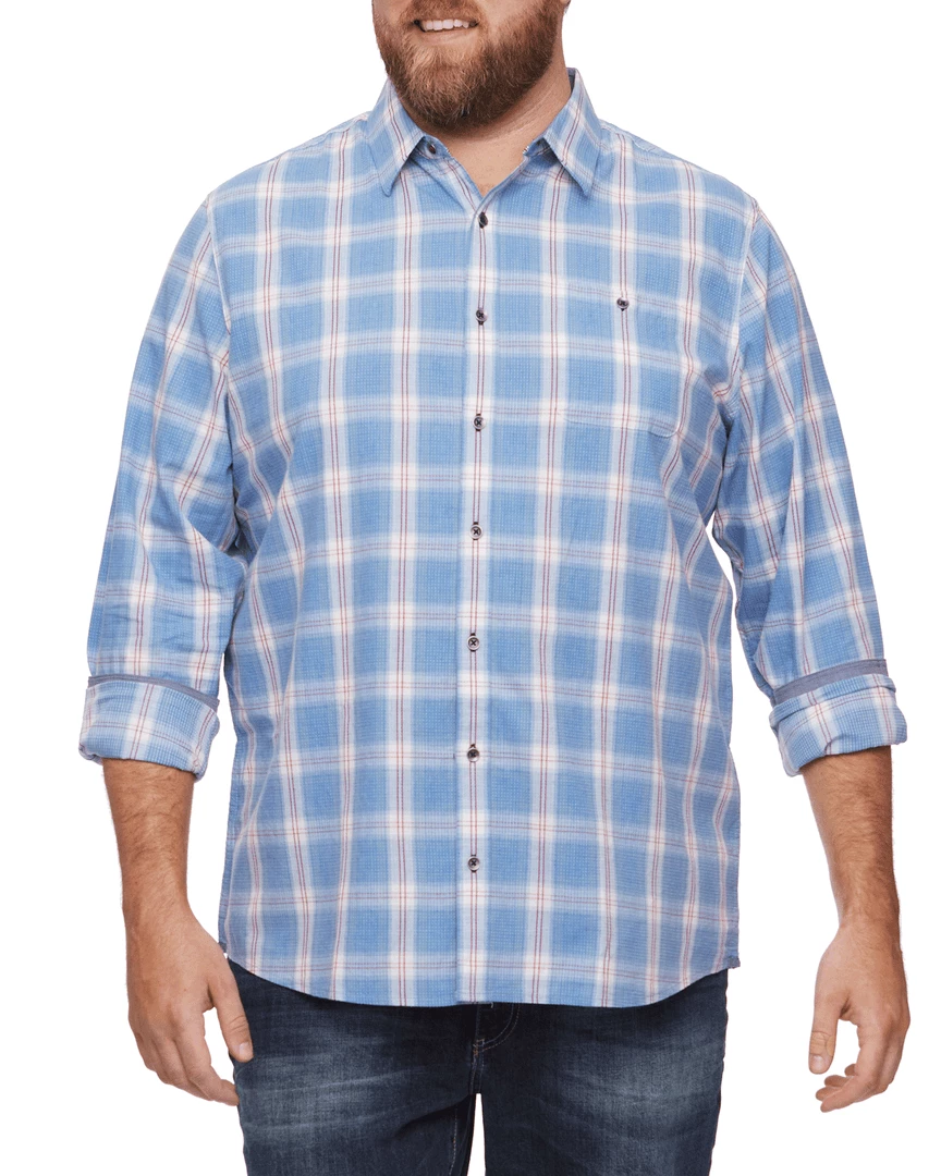 You can’t go wrong with this classic plaid shirt. Cut from premium textured cotton in the perfect untucked length, our Sanderson Shirt pairs well with all your favorite bottoms. Contrast chambray fabric inside collar stand, back yoke, front placket, and sleeve cuffs. Single front patch pocket; button closures.
