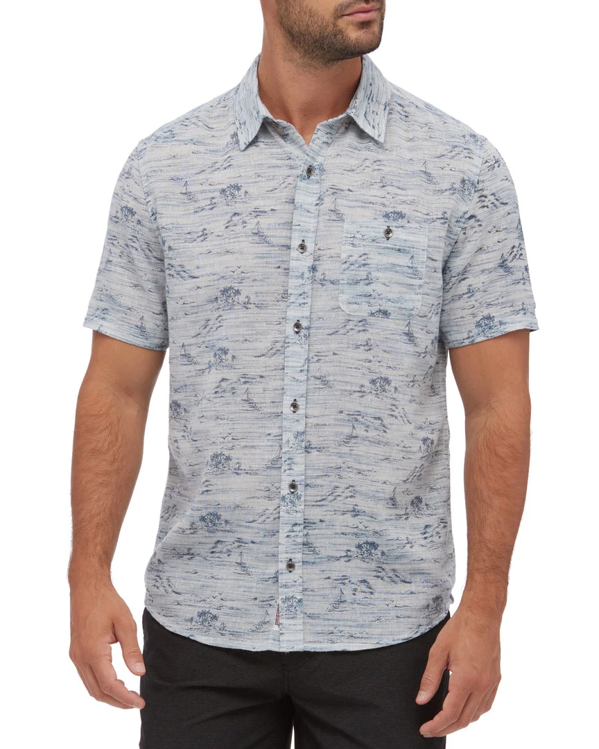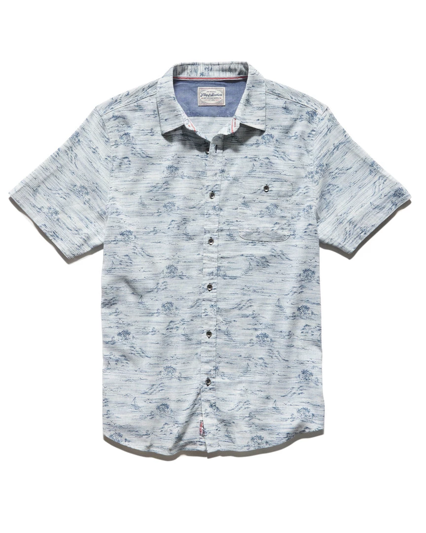 The unofficial uniform of summer, our short-sleeve shirts are the easiest way to stay cool in the heat. This one features an all-over mini island-inspired print and is made from premium cotton fabric that’s been specially washed for supreme softness, making it an instant favorite from the first moment you put it on. Contrast chambray fabric in collar and cuffs. Single front chest pocket; button closures.