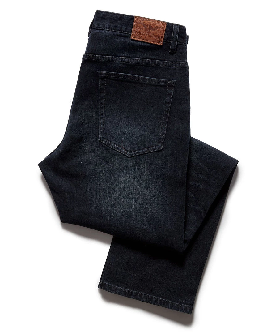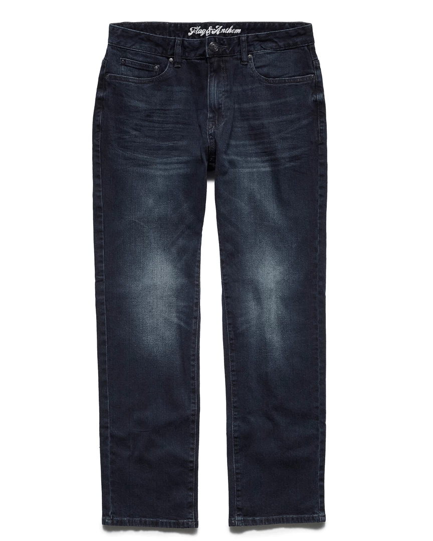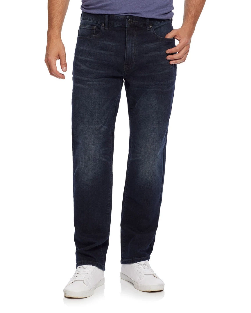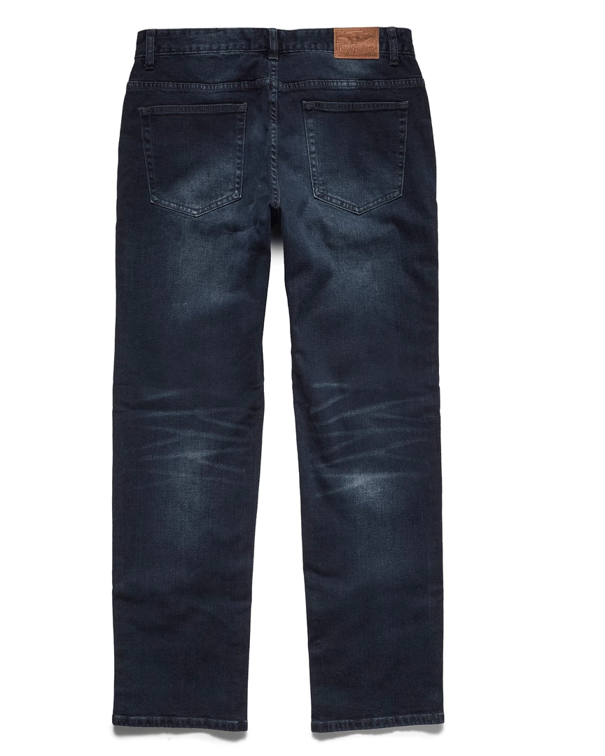 Slim through the hip and thigh with a tapered, straight leg, the Spokane Jean keeps you looking your very best, every denim day. Cut from super-soft stretch-cotton with traditional 5-pocket styling and a zip-front fly with logo button-closure, this regular rise, dark wash jean will soon become a key player in your everyday rotation. Leather logo back patch.Â