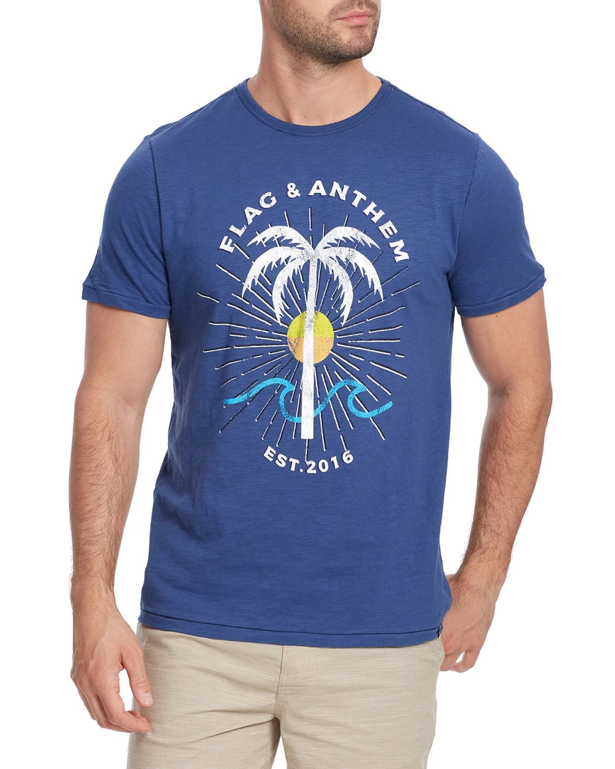 Whether it’s a weekend getaway, a week-long trip, or just a casual daydream, this insanely soft and incomparably comfortable slub cotton tee is begging to be taken on a vacation. Classic crew neckline; tailored athletic fit. All-original Flag & Anthem artwork.