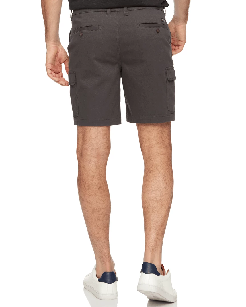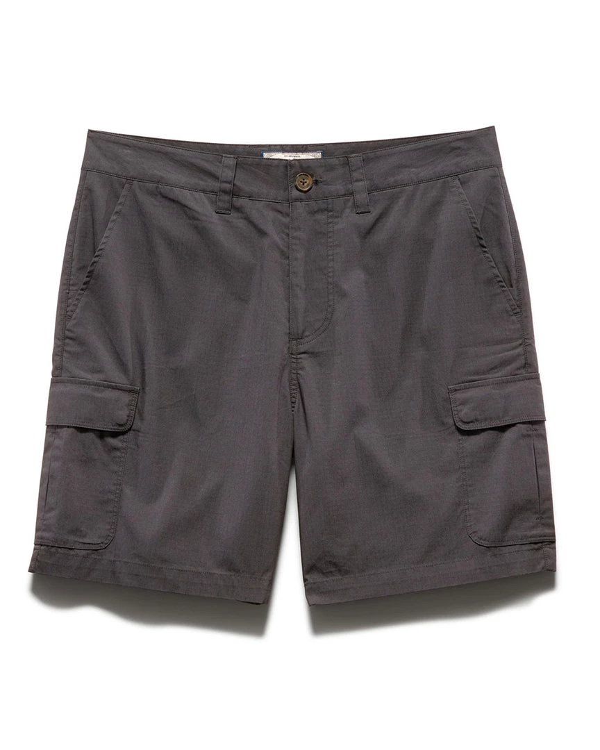 Super-soft, lightweight, yet still extremely durable, our Varga Ripstop Cargo Short is made from an insanely comfortable and stretchy cotton-blend fabric to maximize your ease of movement and outfitted with tons of pockets to supply you with enough storage space for anything you could ever need. They hit just above the knee for a modern, versatile look and pair well with everything from button-front shirts and polos to henleys and graphic tees. Regular rise; straight leg opening. Angled pockets at hips with additional zippered coin pocket on wearer’s right side. Two storage pockets along both thighs; hidden dual snap closures. Zip back pockets. Fabric logo back patch.