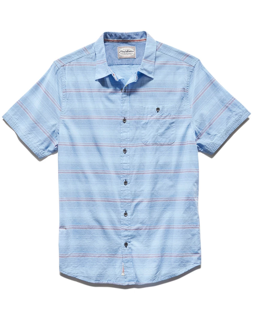 Update your everyday essentials with our Vinton Striped Shirt. Made from premium lightweight cotton in a tailored athletic fit, this comfortable short-sleeve button-up shirt is a great choice for keeping cool in the summer heat and boasts a casual easygoing style. Contrast chambray fabric inside collar stand, back yoke, front placket, and sleeve cuffs. Single chest pocket; button closures.
