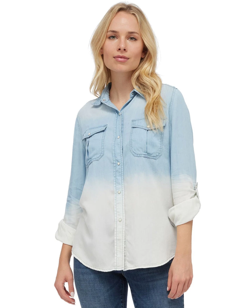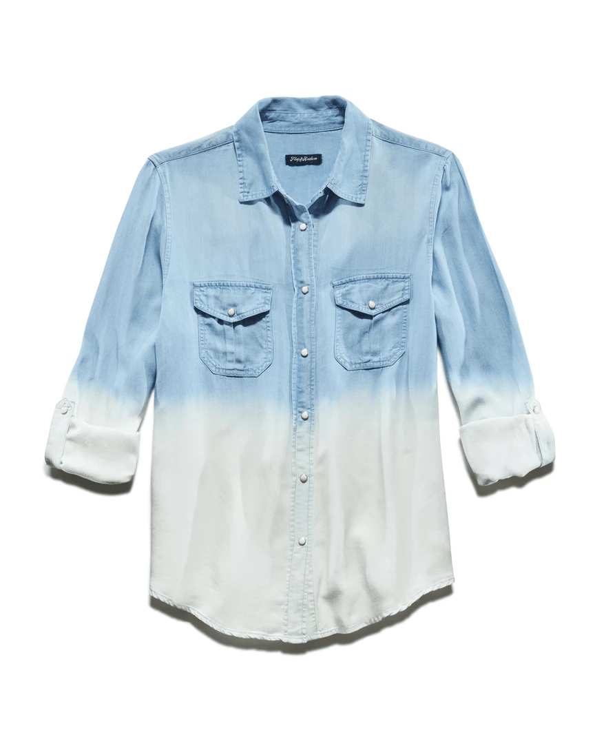 Keep your warm-weather look cool and carefree with our Greenwich women’s dip-dye chambray shirt. Every bit as perfect layered up or worn on its own, this figure-flattering fit has a little extra room and length that’s just right. Crafted from lightweight and breathable Tencel fabric that’s been washed for supreme softness and a unique dip-dye finish, it’s endlessly versatile, unbelievably comfortable, and a must-have addition to any wardrobe. Dual front chest pockets; button closures. Rounded hem.