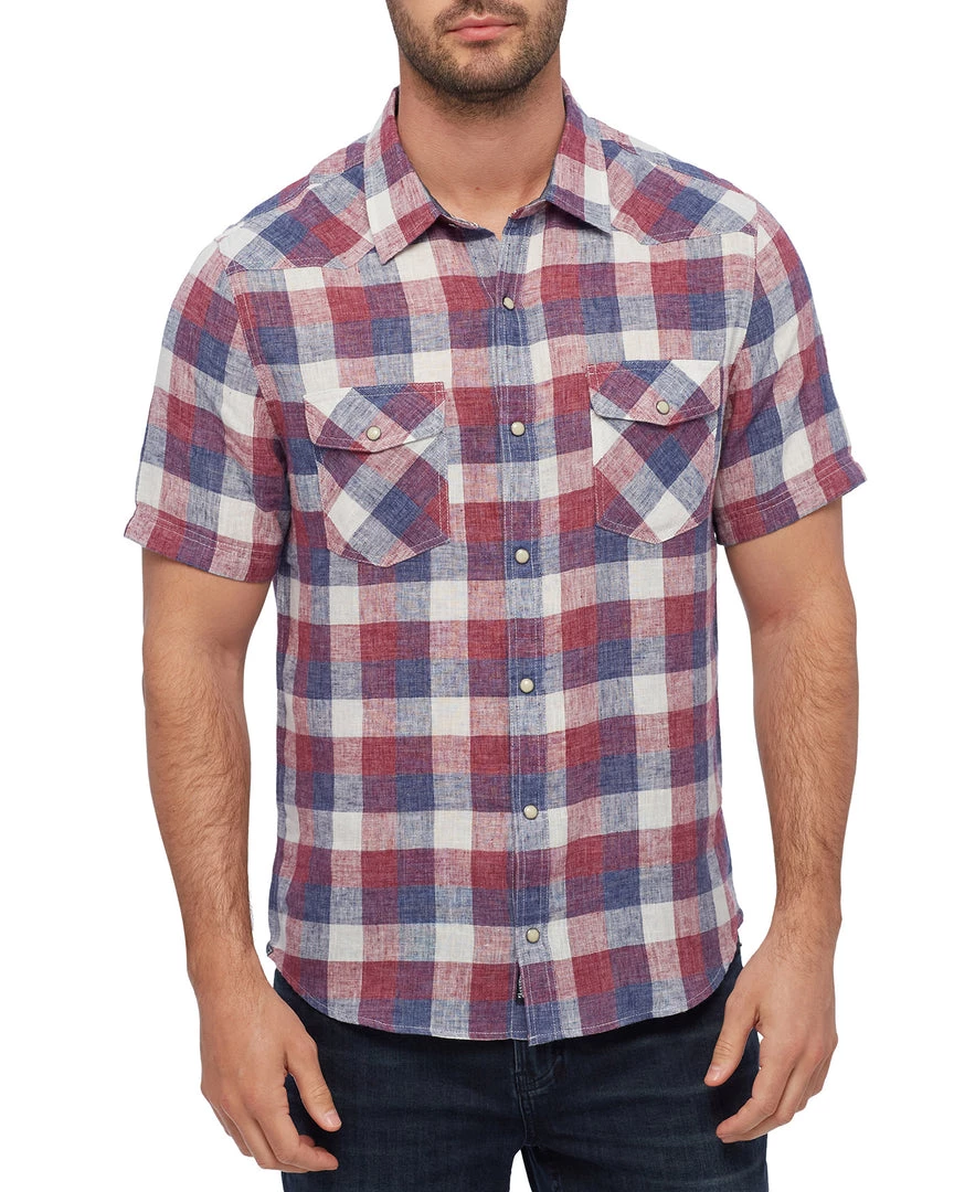 Part of our exclusive Desert Son collection, created in collaboration with Dierks Bentley, this lightweight Western short sleeve shirt will keep you cool and comfortable even on summer’s hottest days. Made from 100% pure cotton that’s been lightly brushed for supreme softness and an ultra-comfortable fit, this premium plaid button-down takes classic vintage style and brings it into the present. Dual chest pockets; pearlized snap closures. Tailored athletic fit.